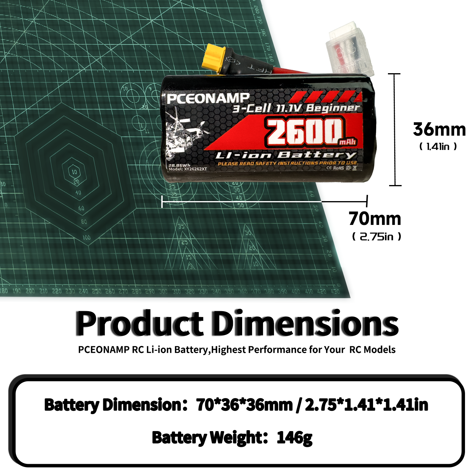 Introducing PCEONAMP the often sought after, powerful and reliable 3S li-ion battery 2600mAh 11.1V. A perfect fit for your Drone experience, this battery is made from high quality and safe materials that guarantee a smooth flow of energy to your RC FPV. Whether it's for RC FPV or any RC Drone activity, this battery enhances the overall performance of your FPV.